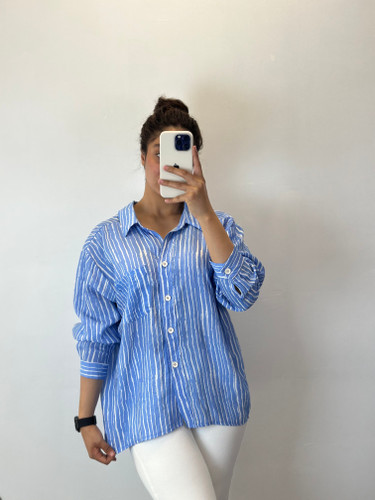 ناموجودشومیز زنانه ترک راه راه پارچه پری برند ktn