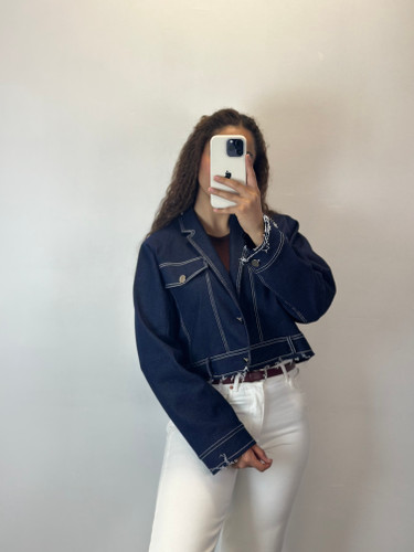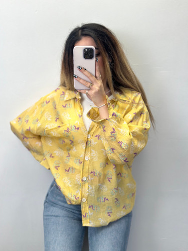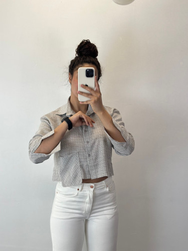شومیز زنانه کراپی مدل تک جیب پارچه نخی چهارخونه