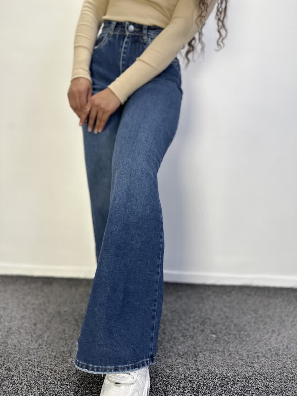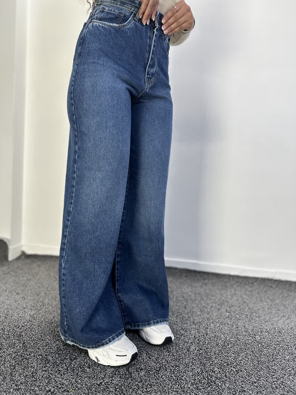 شلوار جین فول بگ مدل آبی تیره قد 112 سایز بندی 30 تا 34(38 تا 46) مناسب برای انواع فرم های بدنی فول بگ آزاد تر و گشادتر از بگ میباشد