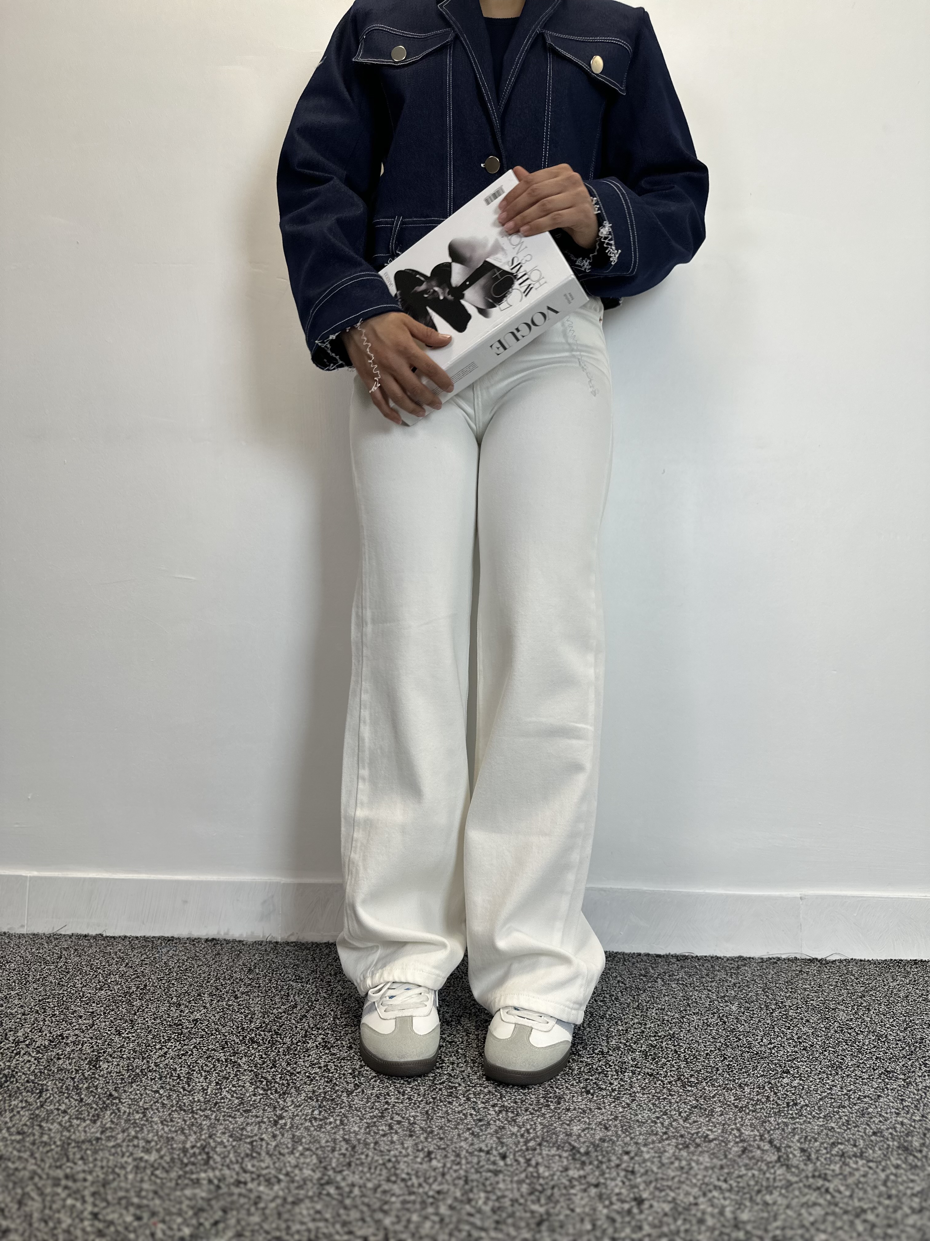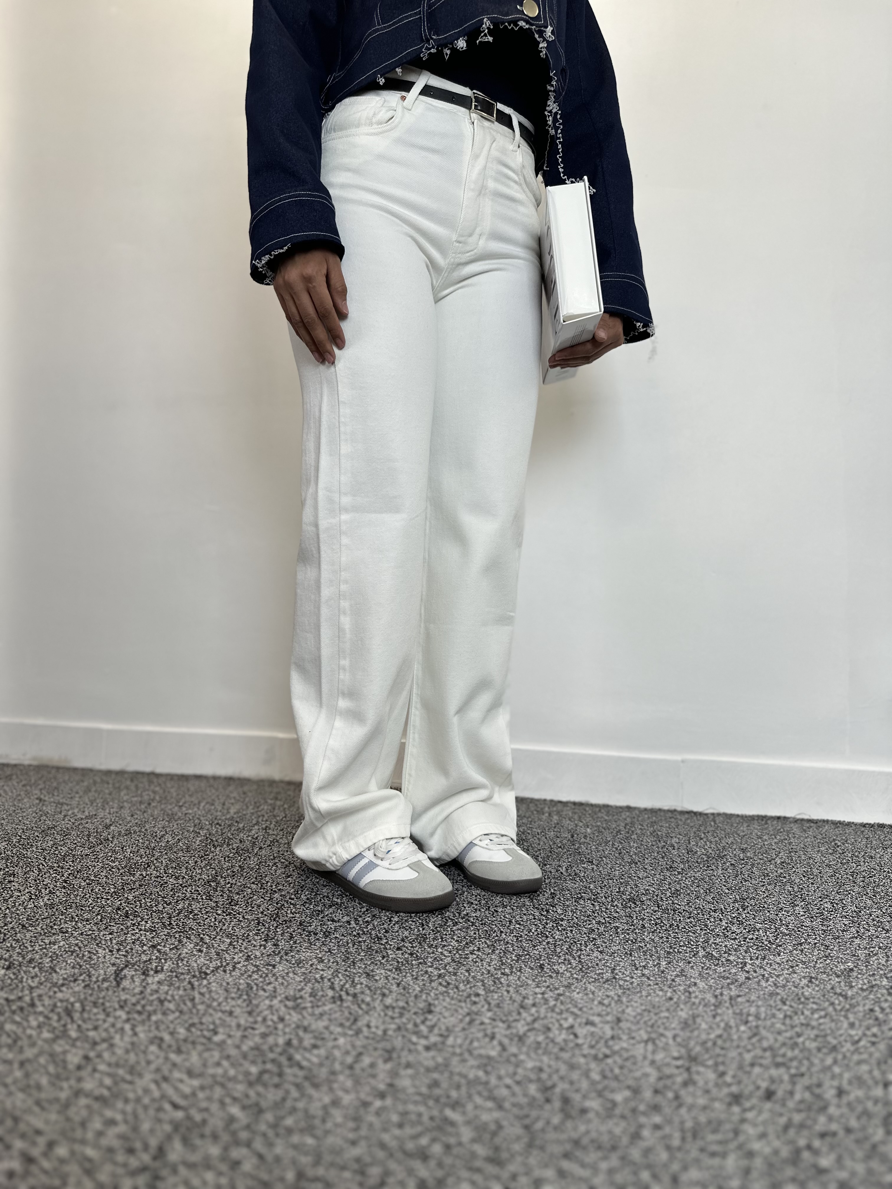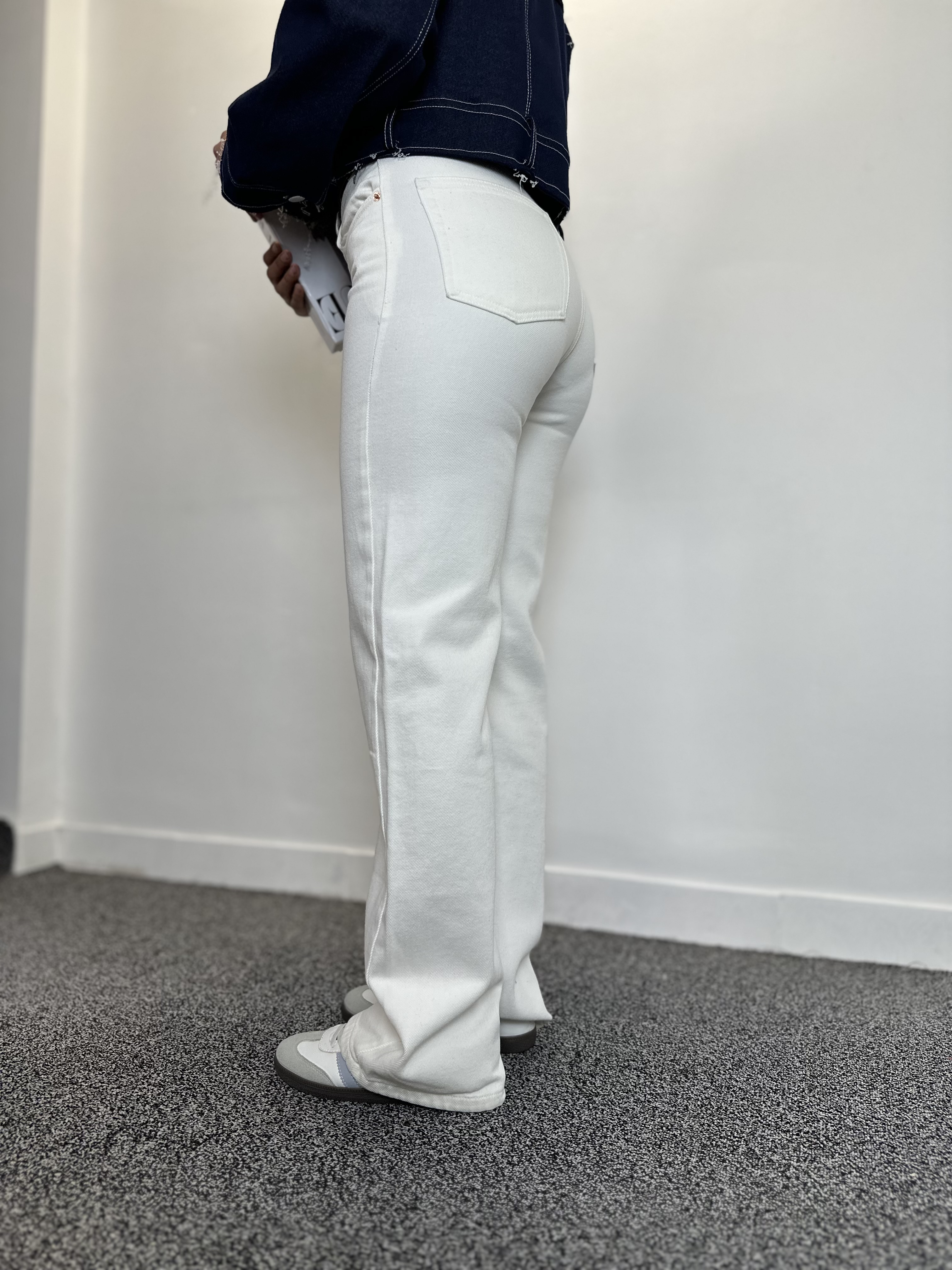 شلوار جین زنانه سفید جنس جکپات ریزشی
