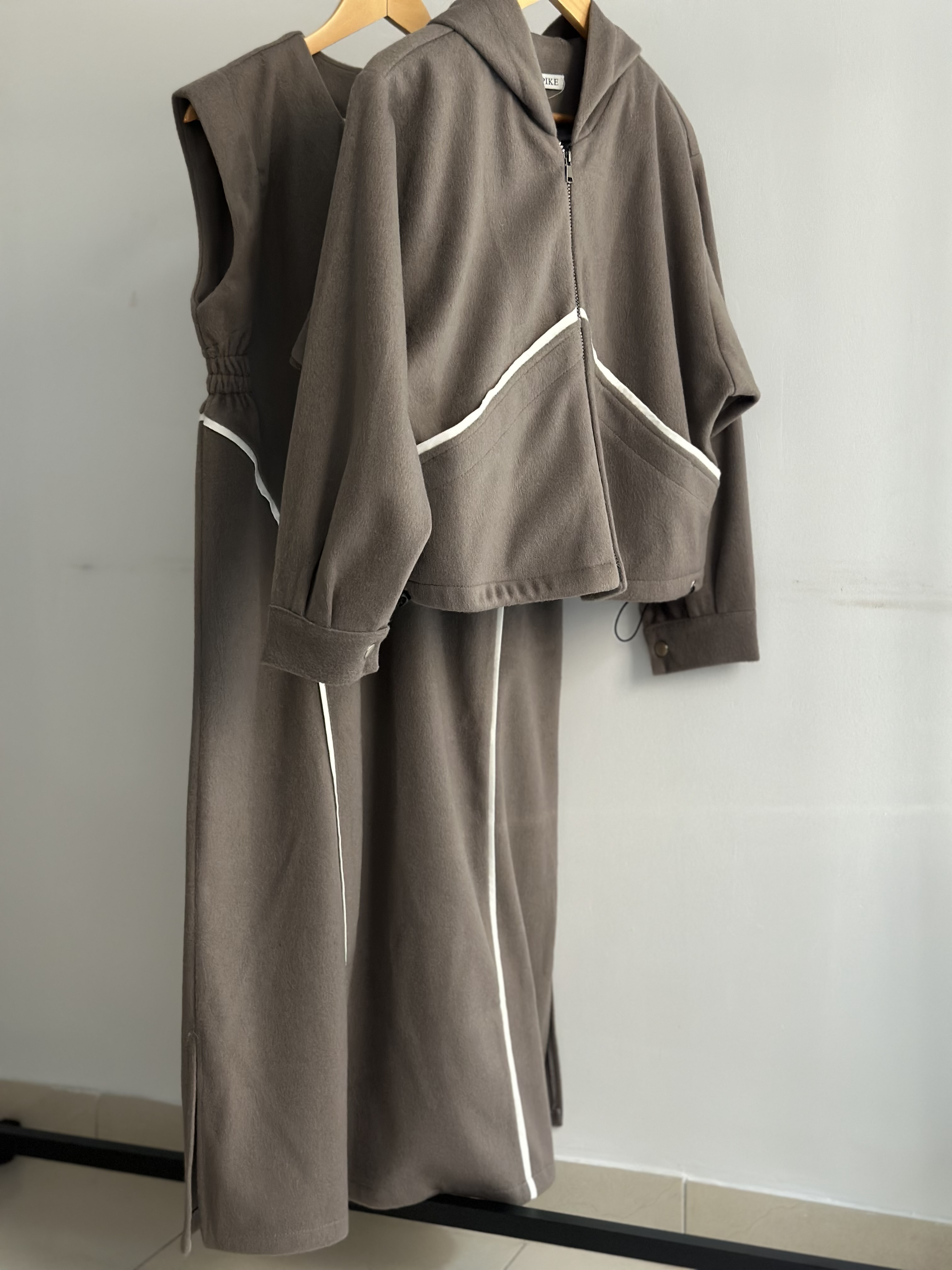 ست کت و سارافون زنانه مدل بغل چاک مغزی دوزی شده جنس فوتر درجه یک