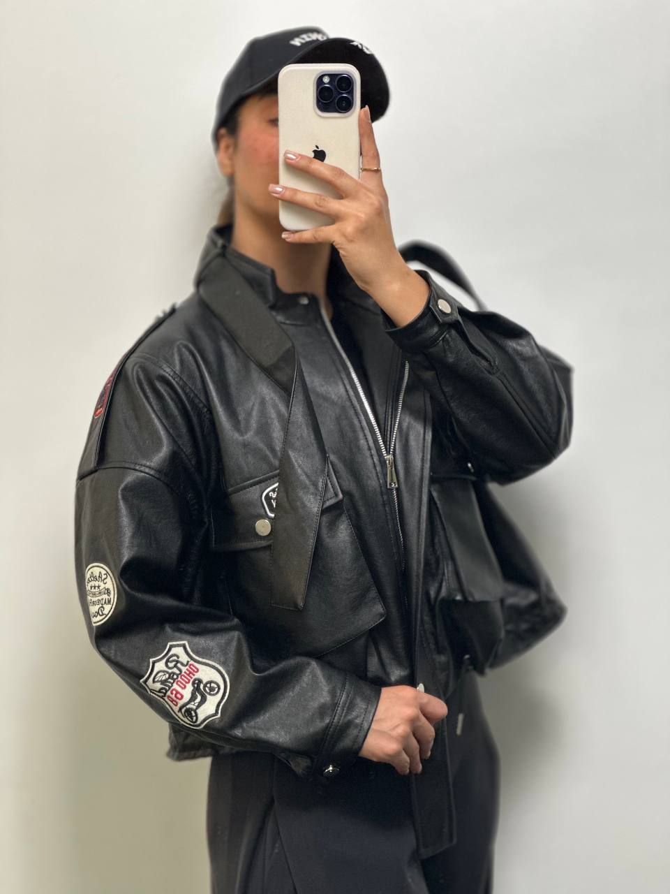 کت چرم زنانه مدل پایین گت دار جنس چرم وارداتی